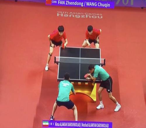 在2023年的杭州亚运会上,伊朗爆出惊天大冷门,男团项目的8强比赛中,伊朗队以3:0的成绩击败拥有张本智和,户上隼辅,吉村真晴的日本队,时隔65年再度闯进亚运会xian'z决赛,并拿下一枚铜牌。不仅如此,他们的阿拉米扬/阿拉米安的男双组合,也成功闯进半决赛,0:4负于中国队樊振东和王楚钦的组合。