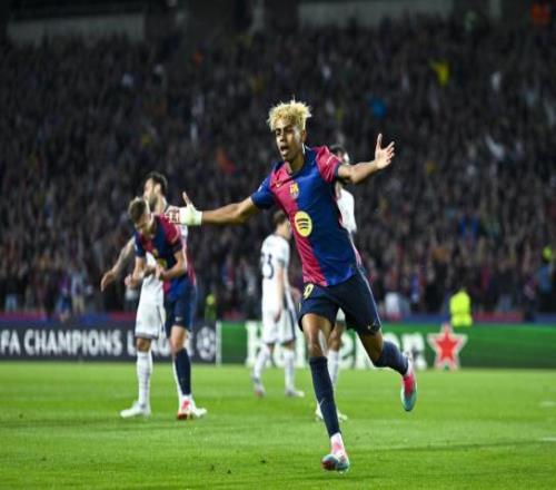 雷速体育10月21日报道宣称 北京时间明天凌晨进行的欧冠联赛阶段第3轮比赛中,巴塞罗那将主场对阵奥林匹亚科斯,本场比赛巴萨球星亚马尔有望创下新纪录。