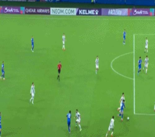 第14分钟,阿苏埃禁区右肋强行突破之后左脚劲射被挡出底线。