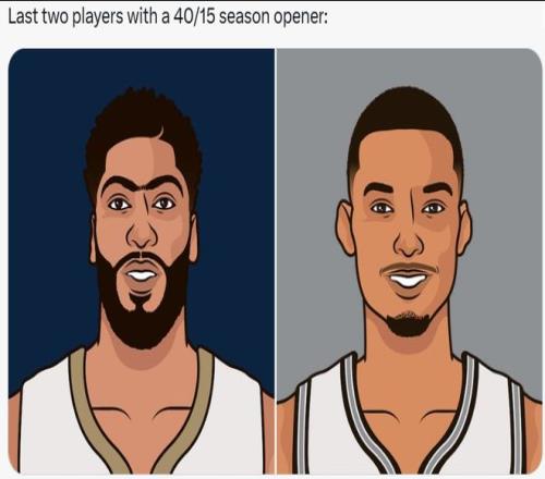 第三,在揭幕战中能够砍下40分15篮板的球员只有文班亚马和浓眉哥。