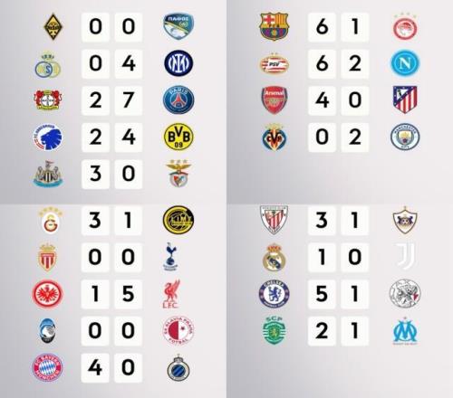 欧冠联赛阶段第3轮,18场比赛共打进了71个进球(场均3.9444),创了欧冠单轮历史进球纪录,刷新本赛季第1轮和上赛季第5轮67球的数字。32强小组赛时代,最高的纪录则是16场63球(场均3.9375) 有观点认为,上赛季冠军巴黎也是靠附加赛晋级淘汰赛的,所以大家都不保守了,无所谓了,联赛阶段随便玩了。 同时本轮强强对话不多,也一定程度上造成了大比分频发。