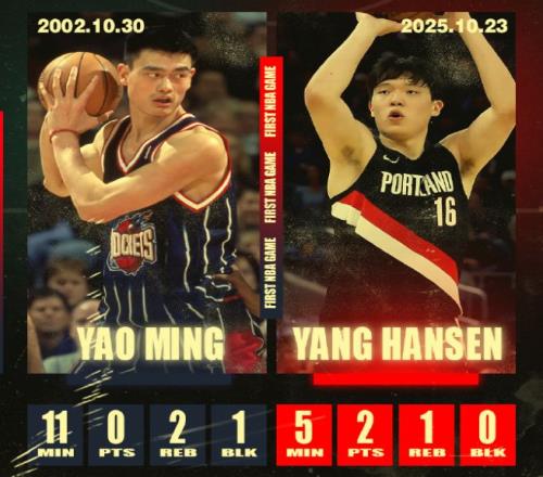 接着来聊杨瀚森首秀在进攻端的表现,虽然只是区区2分貌似不值得一提,但是万事开头难,头三脚难踢。不妨可以看看当年的NBA状元姚明的首秀数据,他上场10分36秒,投篮和杨瀚森一样也是1中0,但是他连造犯规罚球的机会都没有,没有得分。只有两个篮板球和1次盖帽进账,一度被质疑是“水货状元”,所以才有后面巴克利亲驴屁股搞笑一幕出现。